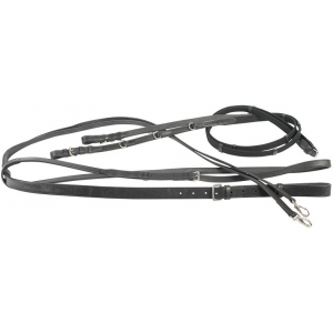 Повод Тодемана – это, по сути, смесь мартингала и скользящего повода, только в руках у всадника остается один повод, который фиксируется в трех положениях за счет перестегивания карабинов. Молодую лошадь очень легко «перетянуть» скользящим поводом (как следствие конь уходит за повод), поэтому использовать его нецелесообразно. Балансирующий повод оказывает более мягкое воздействие и при этом придает шее лошади округленное и приподнятое положение, мускулы лошади активизируются, а движения становятся более свободными. Тем не менее при работе с поводом Тодемана также важна мягкая рука. Балансирующий повод – это очень разумное, логичное и в то же время щадящее средство. В отличие от шпрунта, его можно давать в руки даже не слишком опытному всаднику. Материал: высококачественная кожа и тесьмяный повод