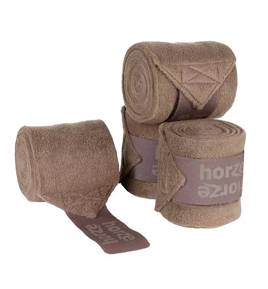 Бинты из мягкого высококачественнго флиса с застежкой-липучкой. Комплект из 4 бинтов в сумочке из полиэстера. Длина 3,2 м. Рекомендована машинная стирка при 40°C. Не сушить в стиральной машине.