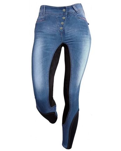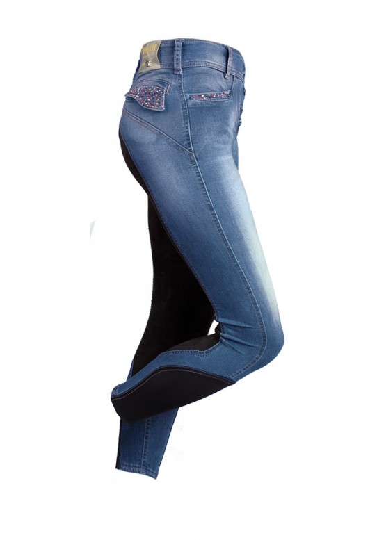Модные и удобные бриджи для верховой езды с высокой талиеей. Сделаны из эластичной дышащей джинсовой ткани (98% - коттон, 2% - эластан) с полной леей из эластичной синтетической замши Comfitech@. Внизу вставка из эластичного материала вместо застежки на липучке. Четыре функциональных кармана, укращенных цветными стразами придают стильный вид. Размеры европейские