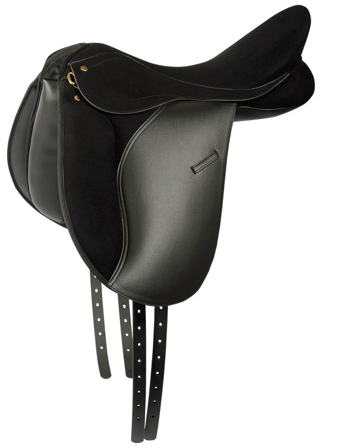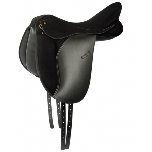 Выполнено из высококачественного синтетического материала, имитирующего кожу. Седалище седла и крылья обеспечивают лучшее сцепление благодаря искусственной замше. Ширина передней луки может быть самостоятельно изменена путем замены ленчика. Легкое выездковое седлоИзначально стоит широкий ленчик. Спинные подушки набиты смесью натуральной и искуссвенной шерсти. Съемные упоры крепятся на липучке. Легкое и прочное. Седло легко моется и чиститься. Гарантия на ленчик 5 лет. Размер: 17,5. Цвет: черный