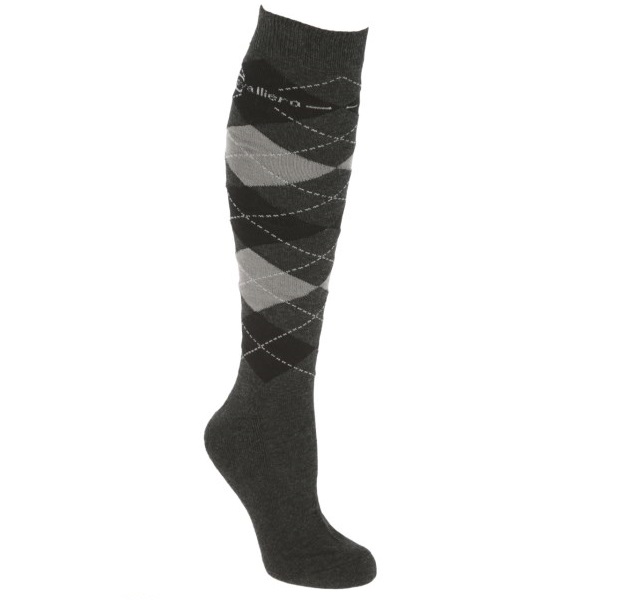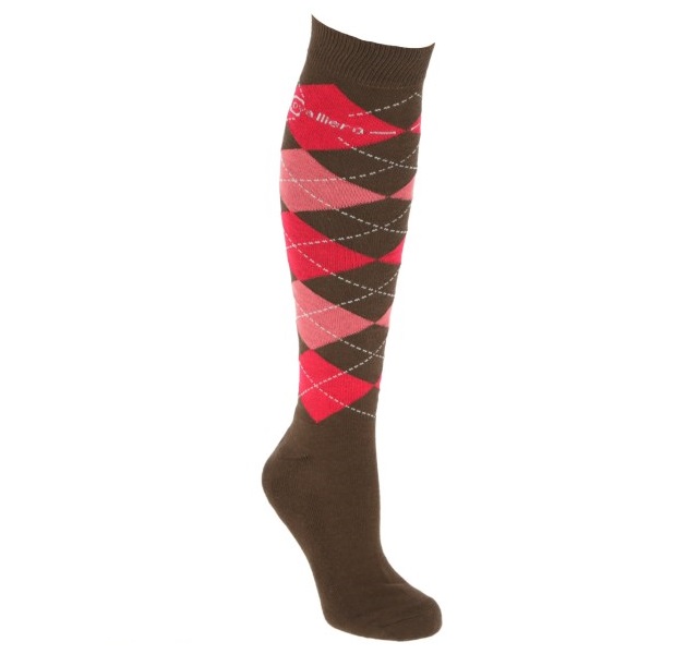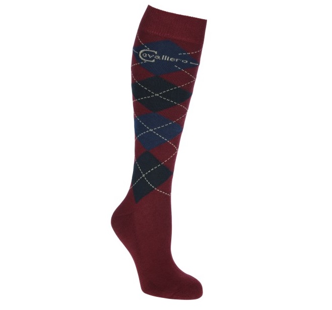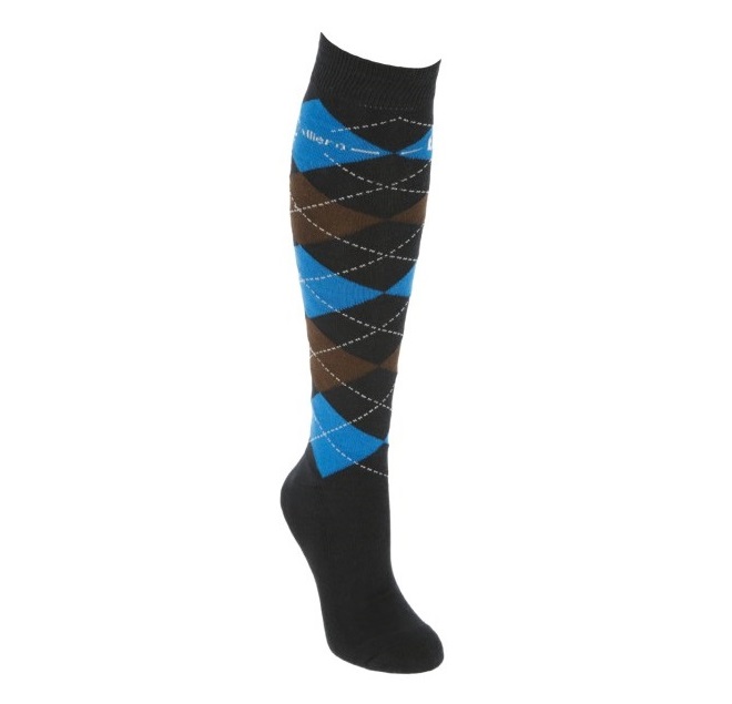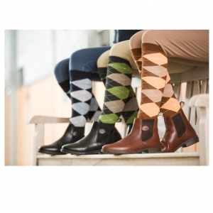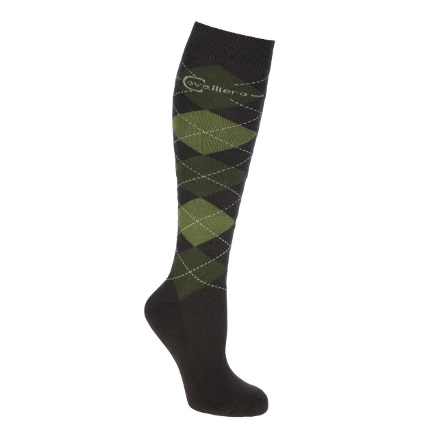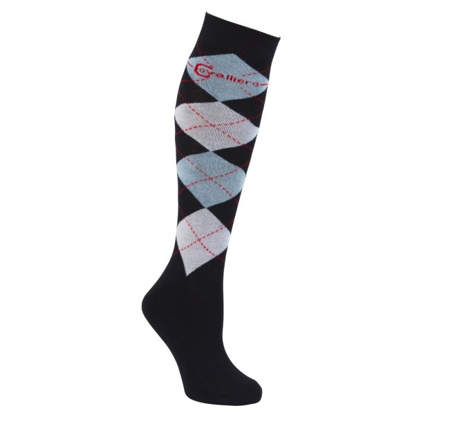 Высокие гольфы для верховой езды, выполненные из эластичного хлопкового материала. Украшены рисунком в ромбик. Состав: 75% хлопок, 20% полиэстер, 5% эластан.