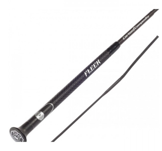 Ультралегкий выездковый хлыст, сделанный из композитного карбонового материала. Удобная ручка с нескользящим покрытием и пластиковым наконечником, а так же, хлопушка-веревочка на конце.