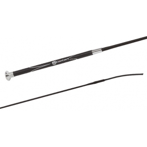 Гибкий, длинный хлыст для выездки покрыт износостойким нейлоном и оснащен тонкой веревочной хлопушкой и удобной гелевой ручкой со специальным рифленым полиуретановым покрытием, которая обеспечивает идеальный контакт с рукой всадника.