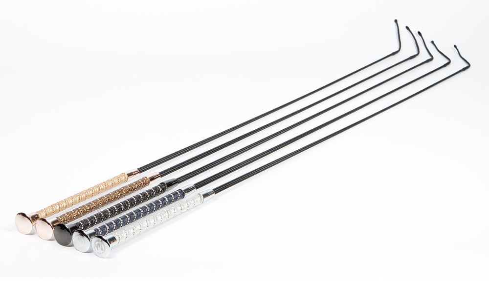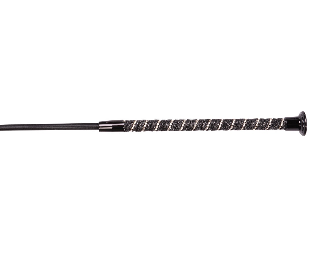 Выездковый хлыст из гибкого стекловолокна, обтянутый нейлоном с оригинальной ручкой, украшенной стразиками. Размер указан без мягкого хвостика (+ 10 см).
