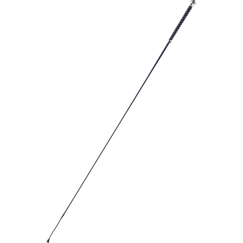 Гибкий хлыст для верховой езды с красивой ручкой, покрытой тканным материалом с серебристым плетением.