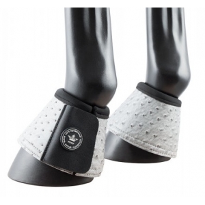 Колокольчики с наружным покрытием под кожу, оснащенные надежной двойной липучкой и мягким неопреновым кантом в области венчика. Колокольчики защищают копыта и венчик лошади от возможных ударов и травм. Идеальны для повседневного использования или турниров.