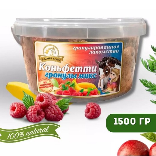 КОНЬФЕТТИ - это вкусное натуральное лакомство, которое не крошится ни в кармане, ни в руках. Содержит натуральные ингредиенты, изготавливается без добавления красителей и консервантов. Гранулы КОНЬФЕТТИ будут отличным поощрением в работе с вашим питомцем. Состав: ячмень экструдированный, отруби пшеничные, кукурузные хлопья, мука травяная, яблочные чипсы, меласса, жом свекловичный, пшеница, натуральная ВАД. Срок годности: 6 месяцев с даты изготовления. Хранить в сухом месте.