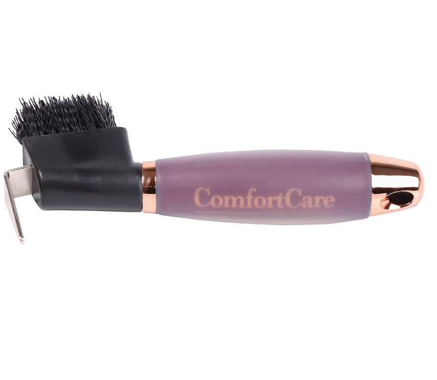 Копытный крючок с жесткой нейлоновой щеточкой и металлическим крючком. Гелевая ручка эргономично адаптируется к вашей ладони.