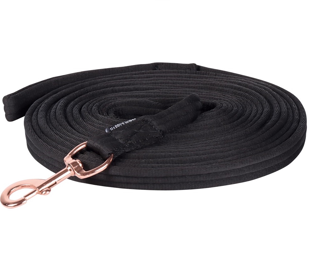 Корда из мягкого полиэстра с прочным карабином-петелькой цвета «розовое золото» и петлей на противоположном конце. Длина 8м. Для удобного хранения, корда упакована в прозрачную сумку на молнии.