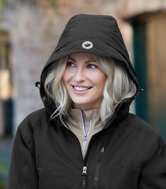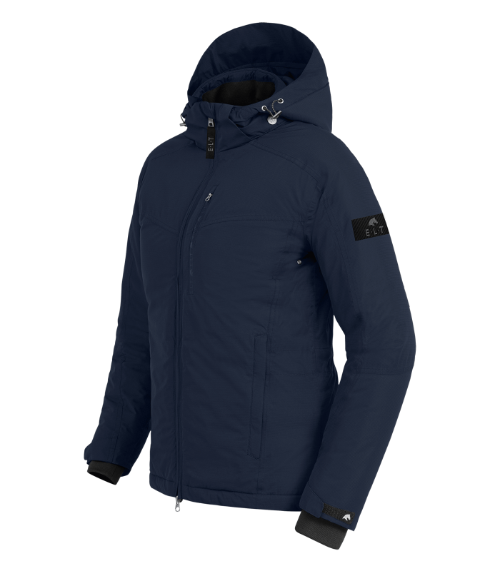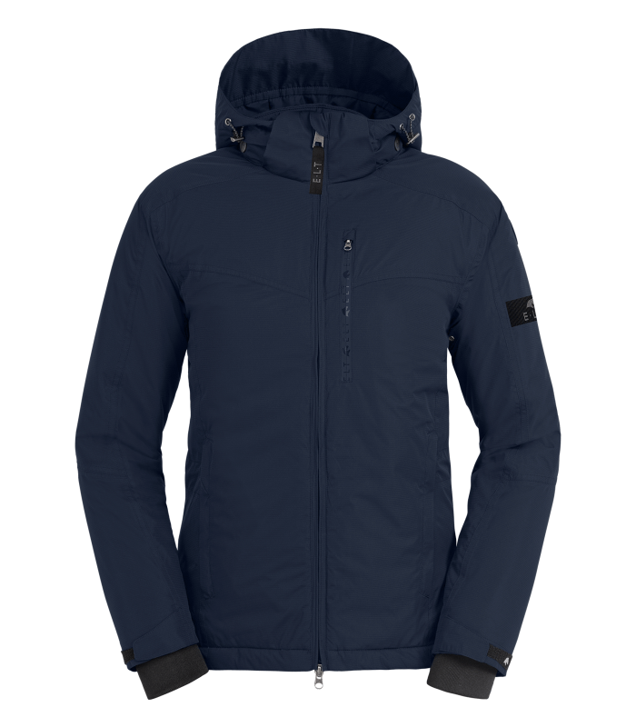 Функциональная куртка для верховой езды в холодные месяцы. Индивидуальный крой Регулируемая ширина талии Дышащий материал Проклеенные швы Водонепроницаемость и ветрозащита Гидростатический напор 5000 мм Двусторонняя молния спереди, 1 нагрудный карман и 2 скрытыx кармана на молнии Съемный капюшон Эластичная манжета, согревающая руки Светоотражающие полосы на рукавах и светоотражающий логотип на капюшоне. Внешний материал: 100 % полиэстер. Наполнитель: 100 % полиэстер. Подкладка: 100 % полиэстер. Размеры европейские