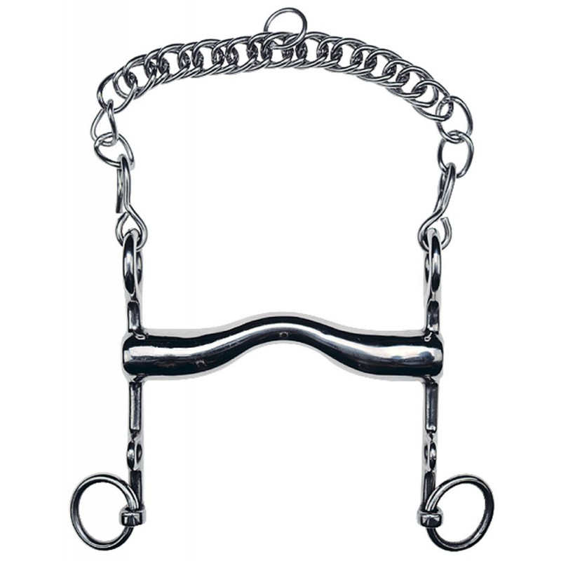 Классический мягкий мундштук с толстым грызлом. Мундштук сделан из высококачественной нержавеющей стали и оснащен цепочкой и крючками. Длина рычага 130 мм. Толщина грызла 23 мм.