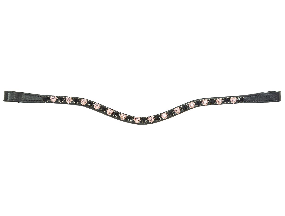 Элегантный налобный ремень изогнутой формы. Мягкая натуральная кожа, украшенная сверкающими кристаллами в форме сердец.