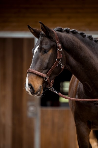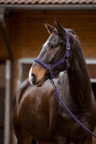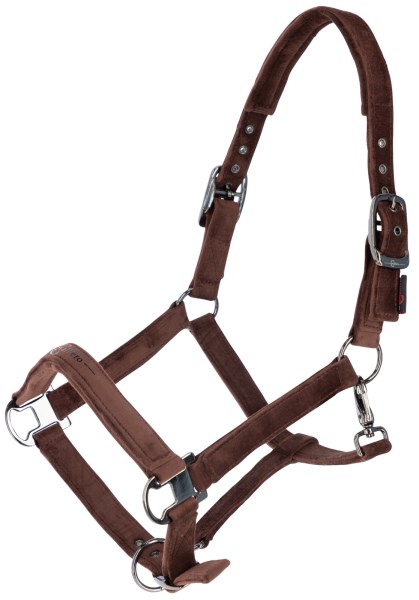 Недоуздок из коллекции Covalliero A/W 2023, выполненый из прочной тесьмы, покрытой мягким барxатом. Прочная фирменная фурнитура серебристого цвета. Регулировка на храпе и двойная регулировка на затылке. Отстегивающийся карабин для удобства одевания.