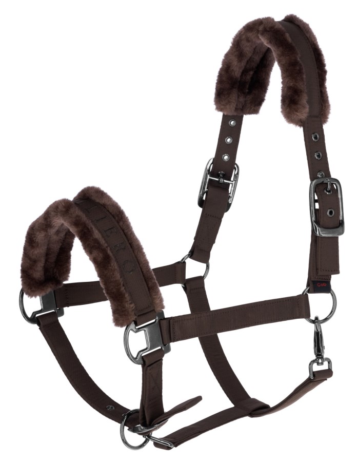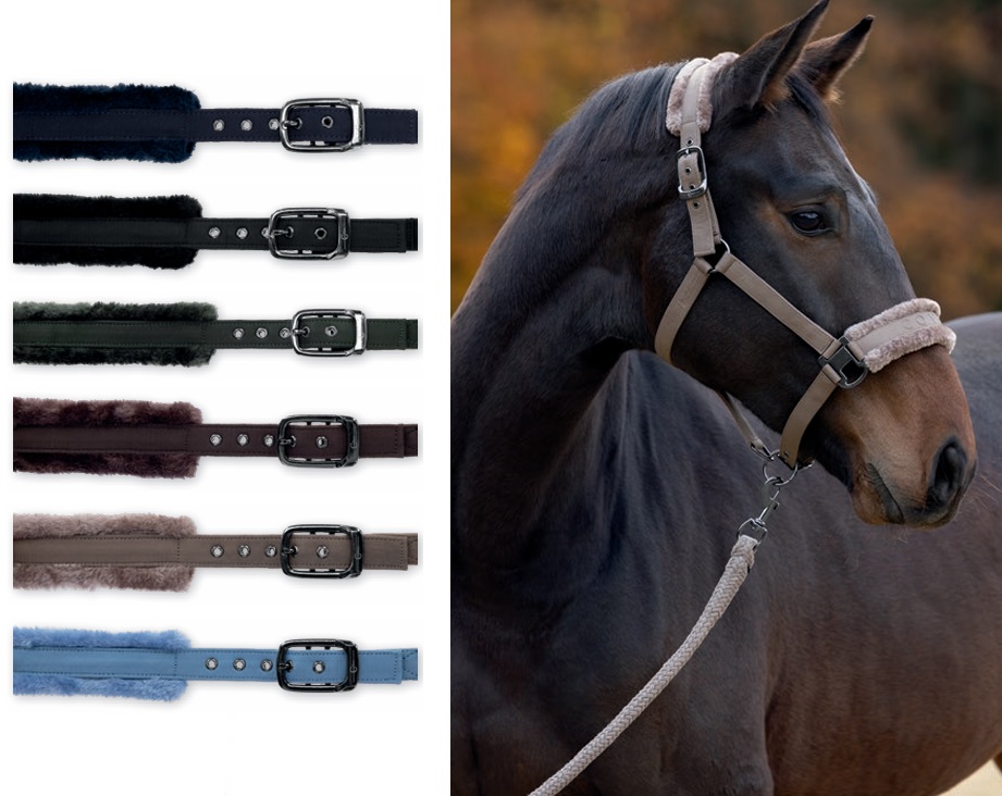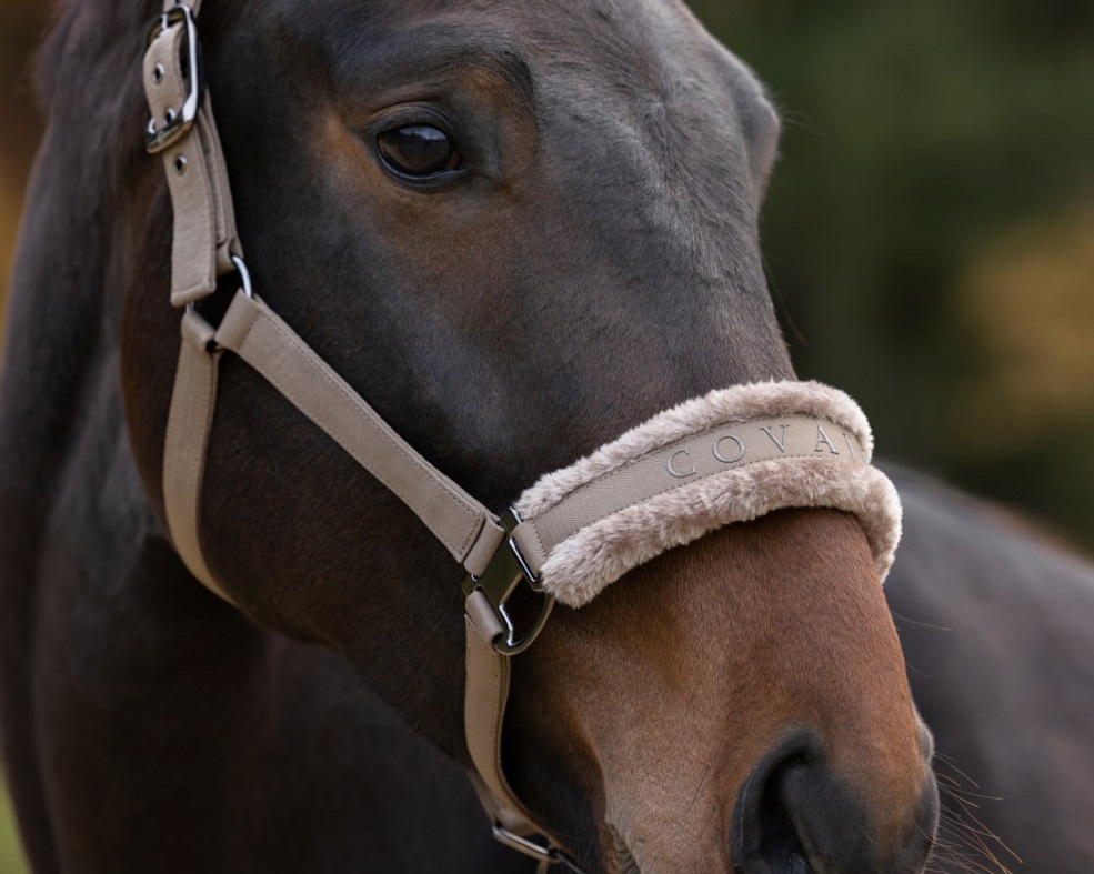 Недоуздок из новой коллекции Covalliero осень-зима 2024-2025 с мягкой подкладкой из искусственного меха для защиты от натирания и максимального комфорта. Прочная фирменная фурнитура темного цвета. Двойная регулировка на затылке и регулировка на храпе. Отстегивающийся карабин для удобства одевания.