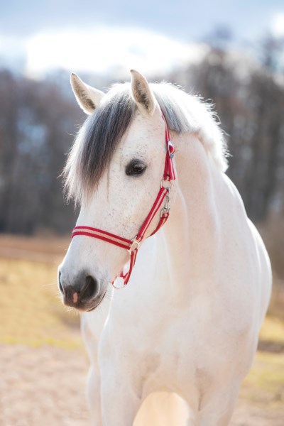 Комфортный, прочный недоуздок Hippo сделан из высококачественной синтетической тесьмы. Фурнитура из нержавеющей стали. Недоуздок имеет бесступенчатую регулировку по шее. Благодаря расстегивающемся карабину на нащёчном ремне недоуздок удобно снимать и надевать.