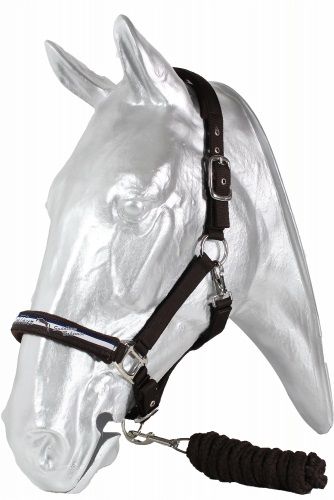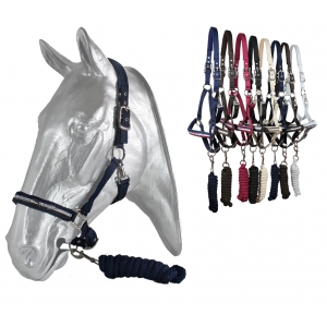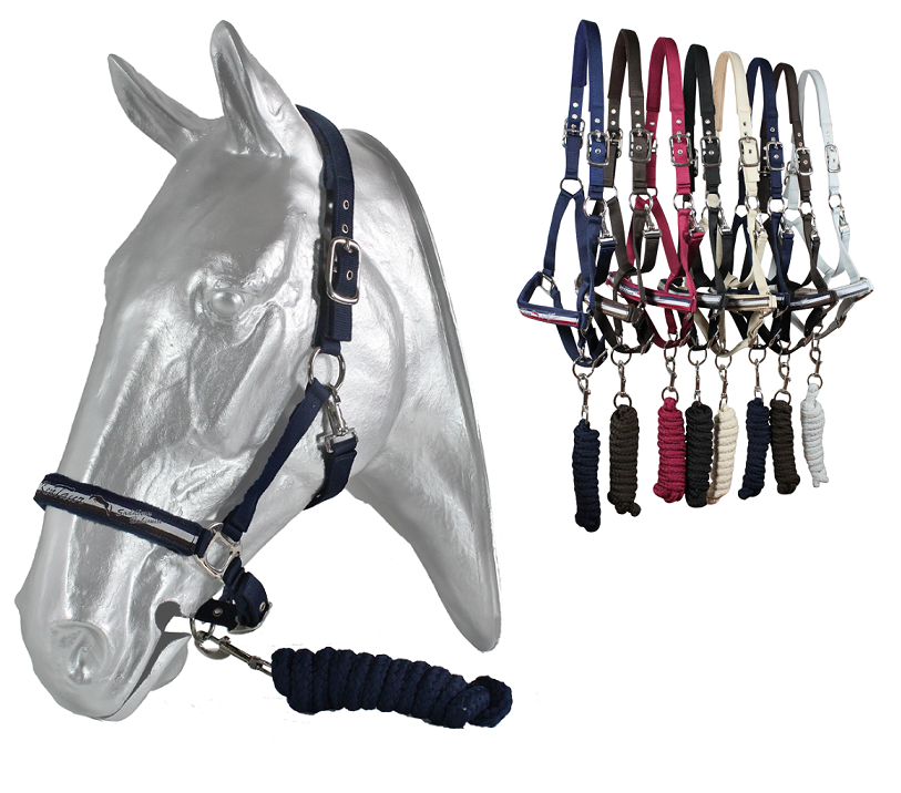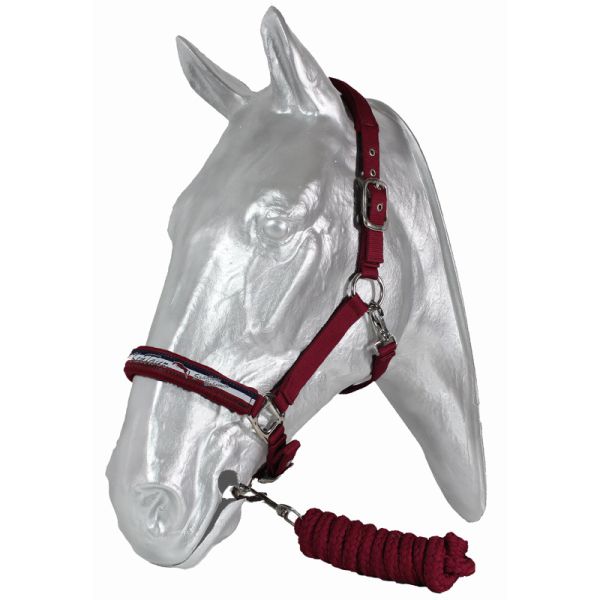 Набор из недоуздка и нейлоногого чумбура. Недоуздок выполнен из двойной нейлоновой тесьмы с мягкой подложкой для максимального комфорта. Двойная регулировка на затылочном и переносном ремнях, серебристая фурнитура.