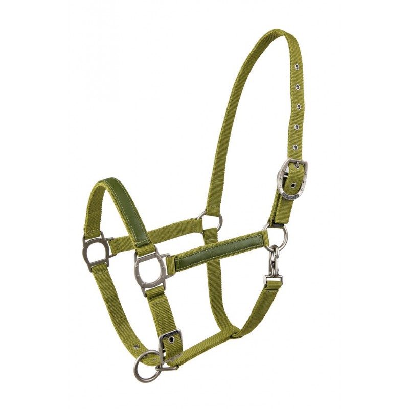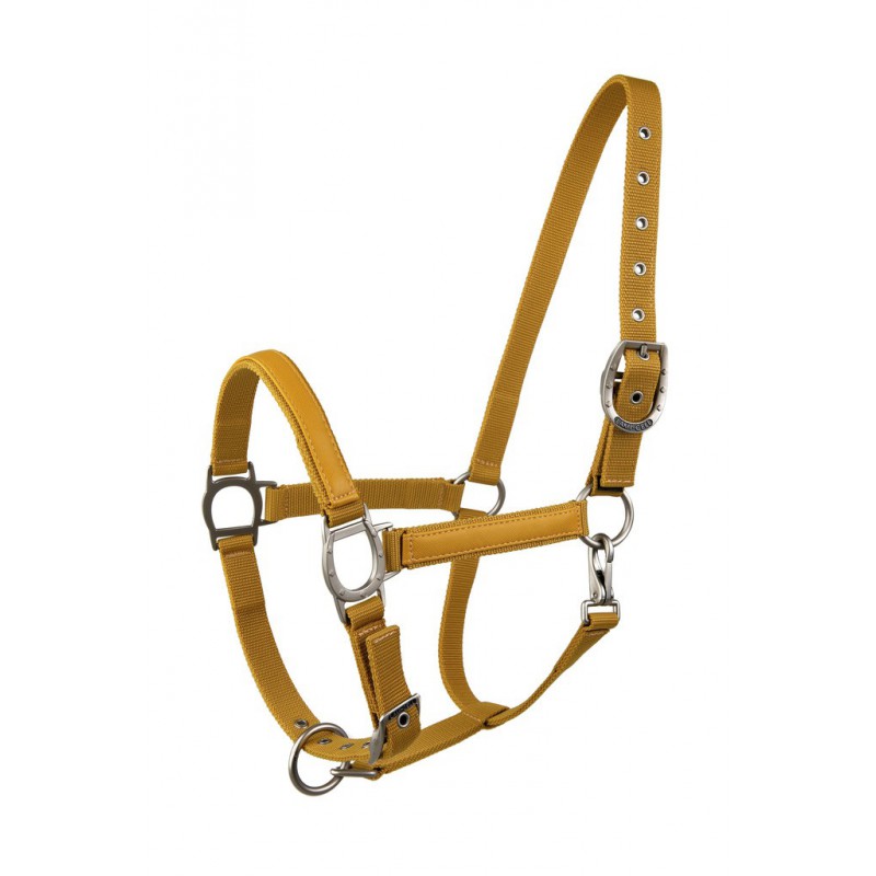 Яркий нейлоновый недоуздок с элементами из искусственной кожи и оригинальной стальной фурнитурой. Мягкая неопреновая подкладка в тон на носовой части и затылке предотвращает натирание. Двойная регулировка и застежка на карабине.