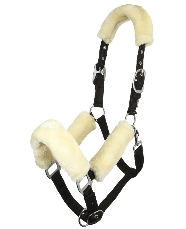 Высококачественный недоуздок с мягкими флисовыми накладками (искусственный мех) на затылке, переносье и нащечных ремнях для максимального комфорта. Оснащен боковой регулировкой с двух сторон, на переносье регулируется нижней пряжкой.