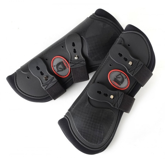 Передние ногавки из ударопрочного гибкого TPU пластика с мягкой неопреновой подкладкой. Ногавки прекрасно вентилируются и позволяют коже дышать. Двойные эластичные застежки на крючках.