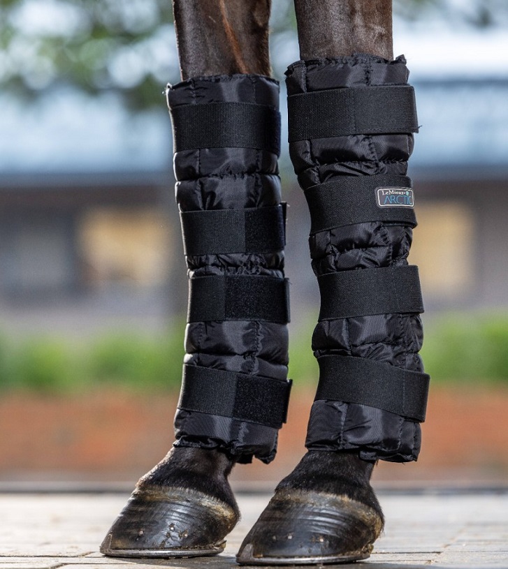 Высокие охлаждающие ногавки Arctic Ice Boots. Четыре эластичных ремешка обеспечивают гибкую посадку и позволяют использовать в любом месте на конечностях животного. Уникальный гель в 24 отдельных карманах обеспечивает максимальный контакт с сухожилиями и суставами и способен сохранять интенсивный "арктический" эффект замораживания в течение оптимального времени, необходимого для достижения эффекта охлаждения. Регулярное использование данных ногавок в течение короткого времени (20-30 минут) после интенсивных физических нагрузок в профилактических целях обеспечит лошади сохранность связок, сухожилий и суставов. Чем раньше удастся снизить температуру сухожилий после работы, тем лучше. Это относится к любой дисциплине конного спорта. Продаются парами.