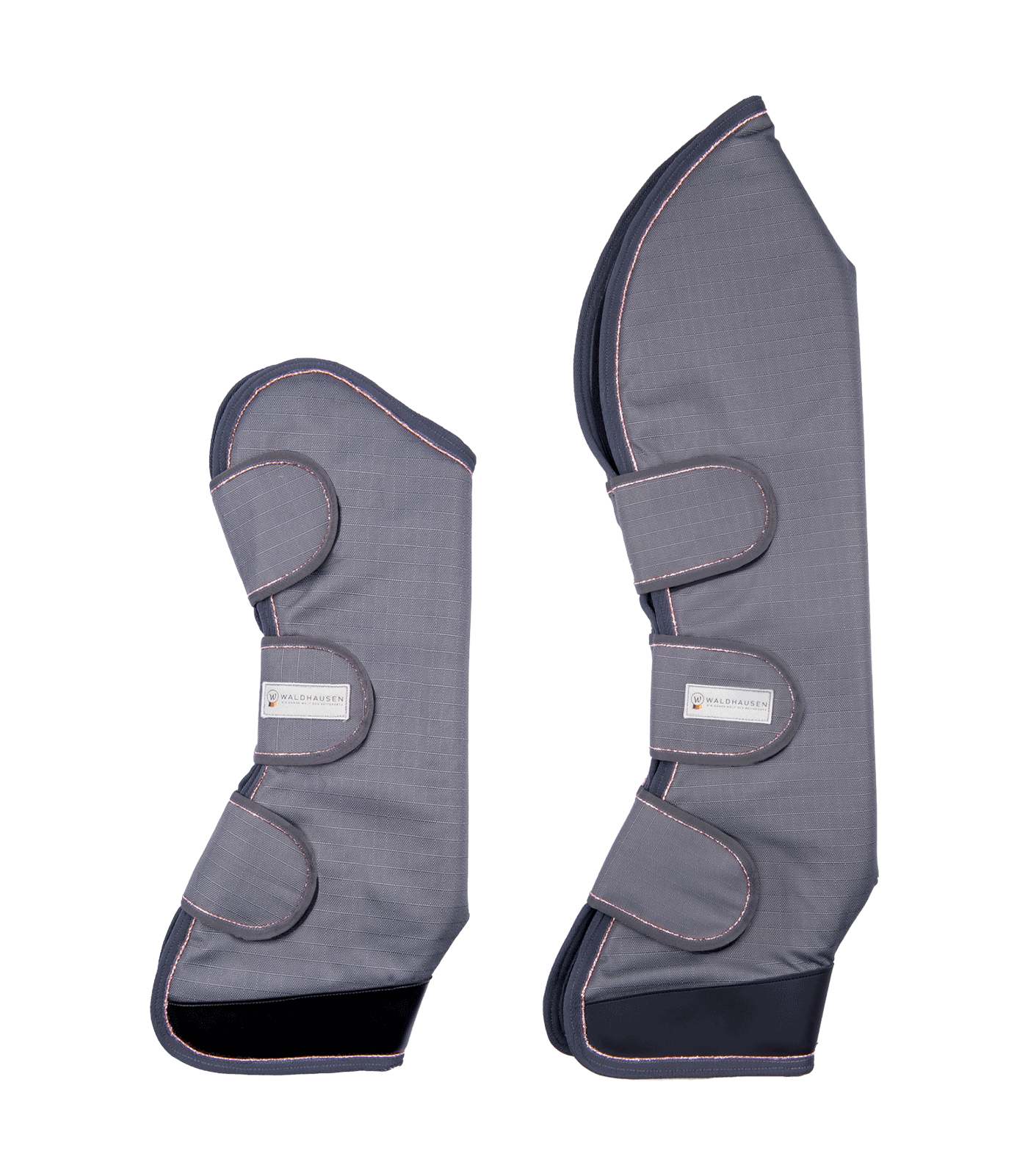 Перевозочные ногавки анатомической формы с тремя прочными застежками-липучками для оптимальной посадки на ноге лошади. Отличный уровень защиты благодаря амортизирующей подкладке из полиэстровой пены (толщина 1,5 см) и высокому крою. Мягкая флисовая подкладка для оптимального ношения. Особенно износостойкий внешний материал (100% полиэстер) с усилением в области пятки. Машинная стирка при 30 градусаx.