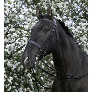 Простое недорогое мундштучное оголовье для лошади без подложки. Качественная, мягкая кожа. Фурнитура серебристого цвета из нержавейки. В комплект входят два повода.