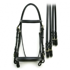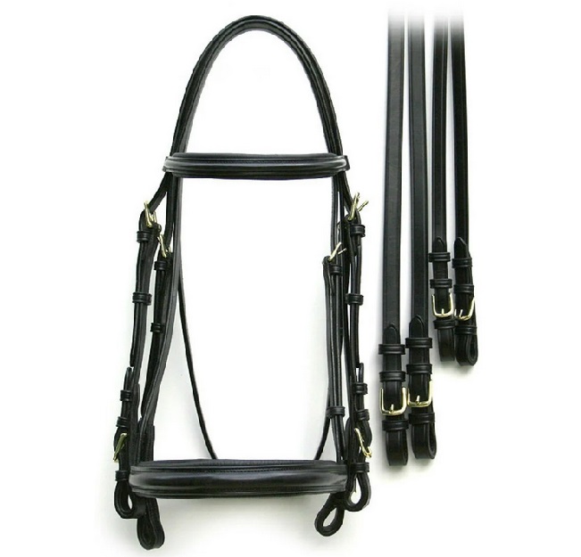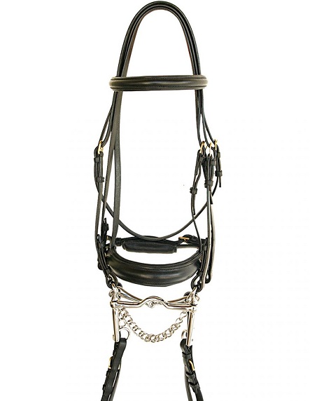 Классическое мундштучное оголовье из мягкой телячьей кожи премиум класса. Cамозатягивающийся капсуль, шириной 30 мм с мягкой подложкой. В комплект входят два кожаных повода. Качественная фурнитура серебристого цвета. Железо в комплект не входит.