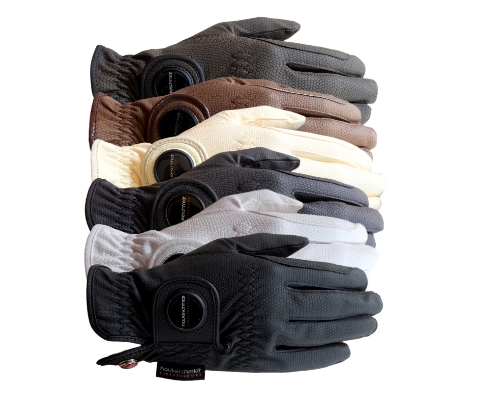 Классическая модель перчаток для верховой езды "Touch of Class" от Hauke Schmidt сочетает в себе идеальный комфорт, великолепное качество, отличное сцепление с поводом. Перчатки идеально подходят для всех видов конного спорта, имеют элегантный логотип на застежках-липучках и усиленные накладки в области повода для предотвращения натирания. Перчатки изготовлены из нового технического полиуретанового материала с высоким содержанием лайкры. Дышащая и очень прочная, но гладкая и мягкая ткань, рассчитанная на длительное использование и регулярную машинную стирку. Для комфортной посадки по руке рекомендуется выбирать перчатки на пол размера больше, чем обычно.