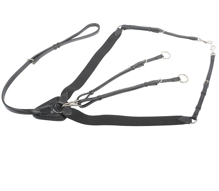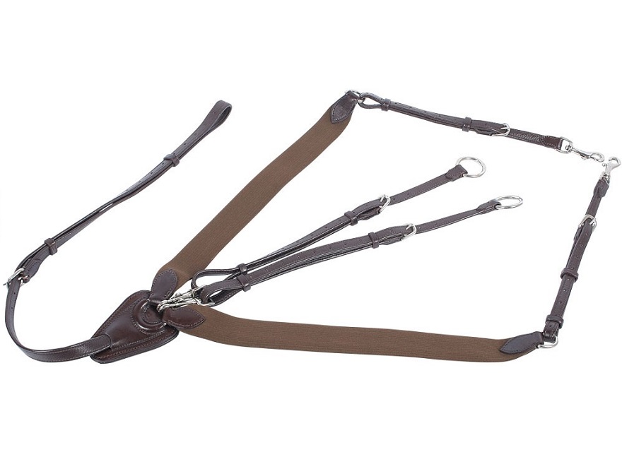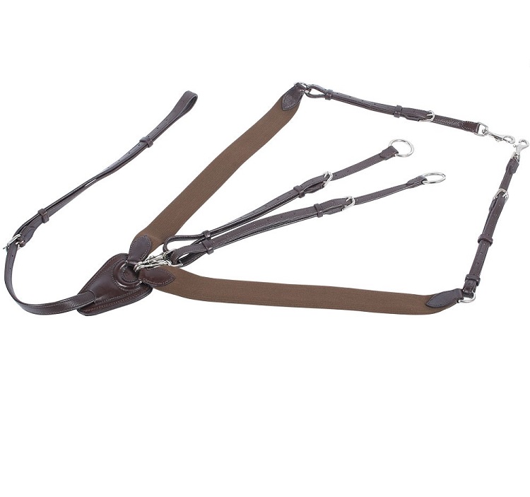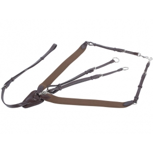 Подперсье из прочной качественной кожи с широкими резинками и отстегивающимся мартингалом на карабине. Никелированная фурнитура. Пристегивается к кольцам на передней луке седла и предотвращает сползание седла назад. Материал натуральная кожа.