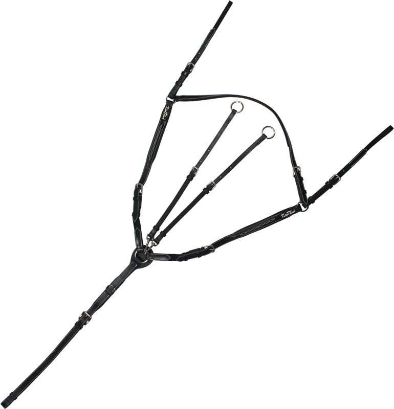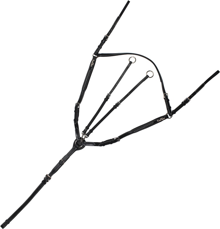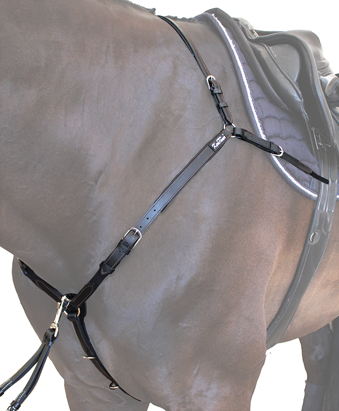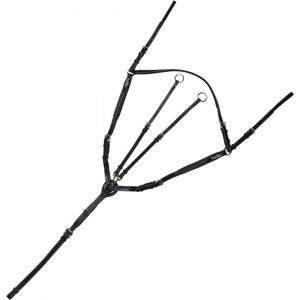 Стильное кожаное подперсье со скользящим мартингалом и красивой декоративной вышевкой Подперсье выполнено из итальянской кожи высшего качества с мягкой подложкой и крепкой фурнитурой из нержавеющей стали. Эластичные резиновые вставки в цвет на плечах. Съемные усы мартигала пристегиваются с помощью карабинов. Цвет: черный с серебристой фурнитурой.