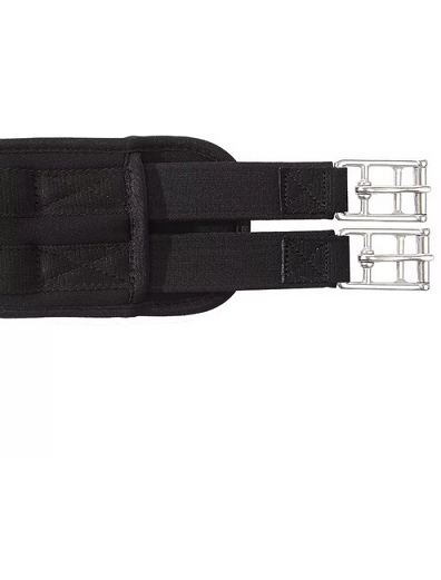 Мягкая конкурная подпруга анатомической формы, обеспечивающая дополнительное пространство для локтевой зоны лошади. Сделана из высококачественного неопрена с наполнением из гибкой пены нового поколения Memory Form. Пена чувствительна к теплу тела и во время использования будет адаптироваться к телу лошади, запоминая форму и создавая нужное сбалансированное распределение давления. На подпруге есть металлическое кольцо в центре для пристегивания дополнительных средств воздействия. Также подпруга снабжена эластичными резинками с одной стороны. Пряжки из нержавеющей стали с роллерами обеспечивают легкое подтягивание подпруги.