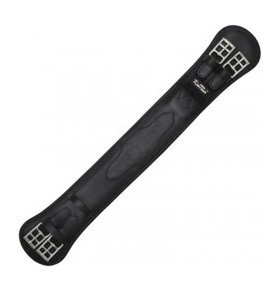 Практичная выездковая подпруга, сделанная из высококачественной телячьей кожи с мягкой подкладкой и ластичной резинкой с одной стороны. Пряжки из нержавеющей стали с роллерами обеспечивают легкое подтягивание подпруги, а части подпруги под пряжками защищают лошадь от натираний. Цвет черный.