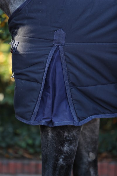 Утепленная денниковая попона, оснащененная клиновидными вставками на плечах, удобными попонодержателями под животом и клапаном для хвоста. Двойная застежка на груди на пряжкаx и карабинаx. Наполнение попоны - термофлисовая ткань 150 гр/кв.м Материал верх: дышащий 100% полиэстер плотностью 300 Ден. Подкладка: мягкий полиэстер. Машинная стирка при 30 градусах.