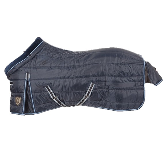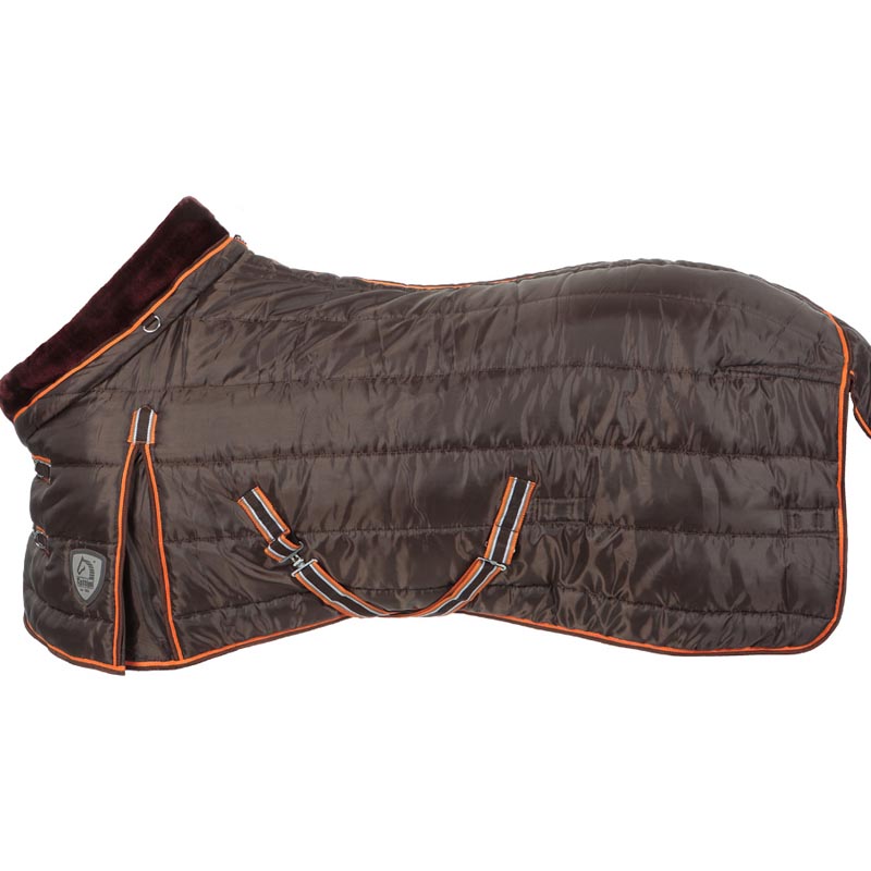 Эта утепленная попона подойдет в качестве денниковой или прогулочной при небольших осадках. Изготовлена из высококачественный ткани плотностью 420 Den. Довольно теплая попона с подкладкой из полифила, плотностью 330 грамм. Вставки на плечах обеспечивают свободу движений. Клапан для хвоста, троки (перекрещивающиеся попонодержатели) и двойные, регулируемые застежки на груди. Есть крепления для пристегивания капора. Капор продается отдельно Машинная стирка при 30 градусах.