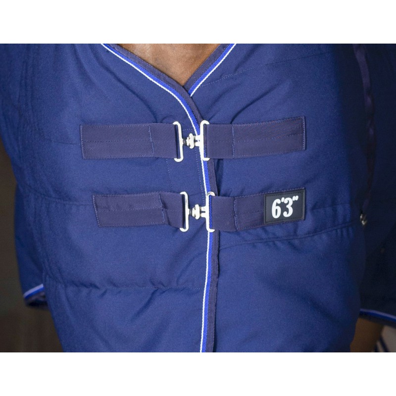 Попона из прочного полиэстера Оксфорд плотностью 1000 ден с подкладкой из полиэстера 150 гр. Оснащена большой скрытой накладкой на холке из синтетической овчины, перекрестными попонодержателями и ремнем для хвоста. Двойная Т-образная застежка на груди. Машинная стирка при 30 градусах.