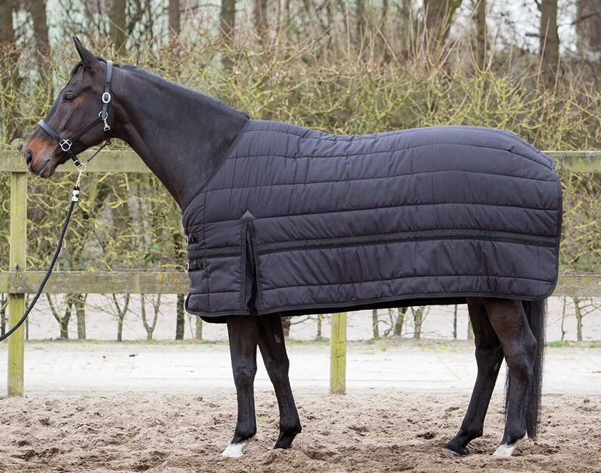 Утепленная денниковая попона с флисовой подкладкой прекрасно впитывает и выводит влагу наружу, оставляя тело сухим и сохраняя тепло внутри. Попона может использоваться как отдельно денниковая или как дополнительная к дождевой при более низких температурах для прогулок. Внешний материал -35% хлопок, 65% полиэстер Внутреннее наполнение - полиэстер 200 гр. Подкладка - флис. Длинные плечевые вставки. Двойная застежка на груди. Машинная стирка при 30 градусах.