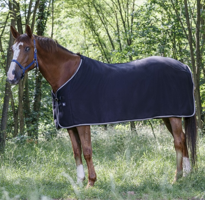 Попона флисовая эконом-класса с одинарной застежкой на груди.