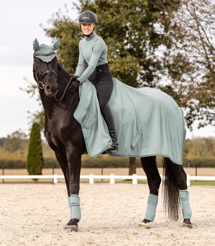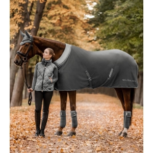 Элегантная флисовая попона с мягким воротником в области холки и шеи. Попона изготовлена из высококачественного флиса, не образующего катышков, и обеспечивает оптимальное впитывание влаги. Украшена декоративным кантом в цвет попоны и фирменным блестящим логотипом. Оснащена передней застежкой-липучкой, перекрестными съемными попонодержателями и петлей для хвоста.