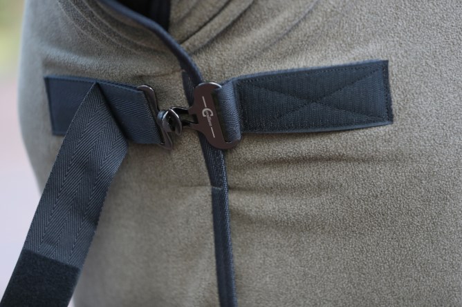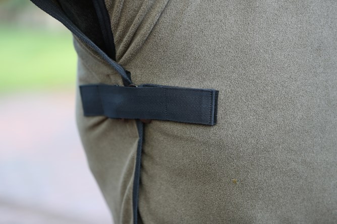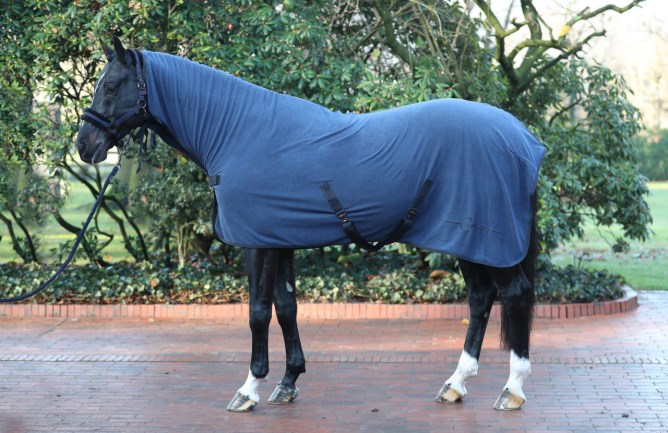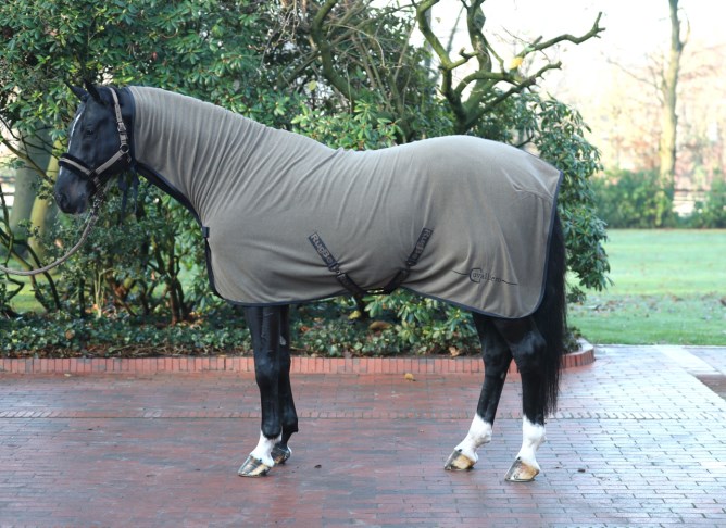 Попона изготовлена из качественного не скатывающегося флиса и обеспечивает прекрасное впитывание влаги. Одинарная застёжка-пряжка на груди, закрывающаяся липучкой, перекресные съемные попонодержатели. Капор крепится специальной застежкой к недоуздку и может в мгновение ока превратиться в обычный ворот. Материал флис (100% полиэстер). Машинная стирка при 30 градусах.