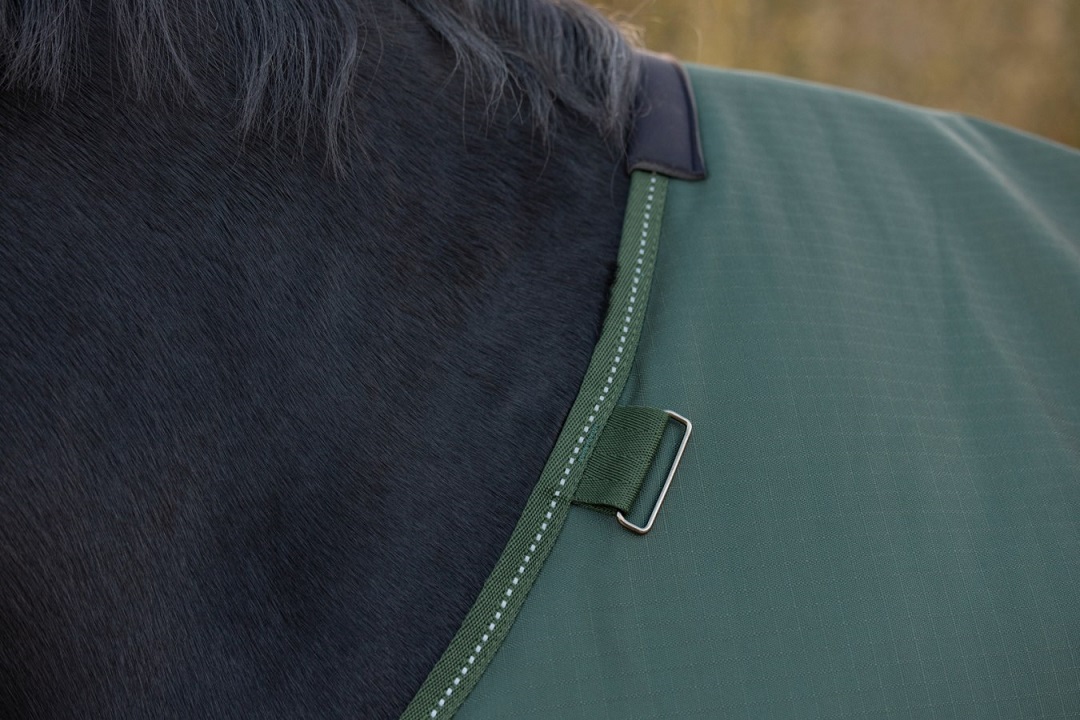 Идеальная попона для холодных и влажных дней. Сохраняет лошадь сухой снаружи и регулирует температуру внутри. Классический крой. Высокий коэффициент воздухопроницаемости - 3000 mvp и непромакаемости - 3000 wr/wp. Попона оснащена специальными вытачками для плечей, удобными попонодержателями под животом, двойными застежками на груди с карабинами и пряжками, держателями для задних ног. Защитный клапан для хвоста, мягкая опушка на холке. Есть возможность для пристегивания капора. По бокам горловины расположены 2 кольца для пристегивания капора. Капор продается отдельно. Снаружи: полиэстер рипстоп 600 Den. Наполнение попоны - термофлис плотностью 100 гр/кв.м. Приятная внутренняя подкладка, которая не натирает шерсть Машинная стирка при 30 градусах.