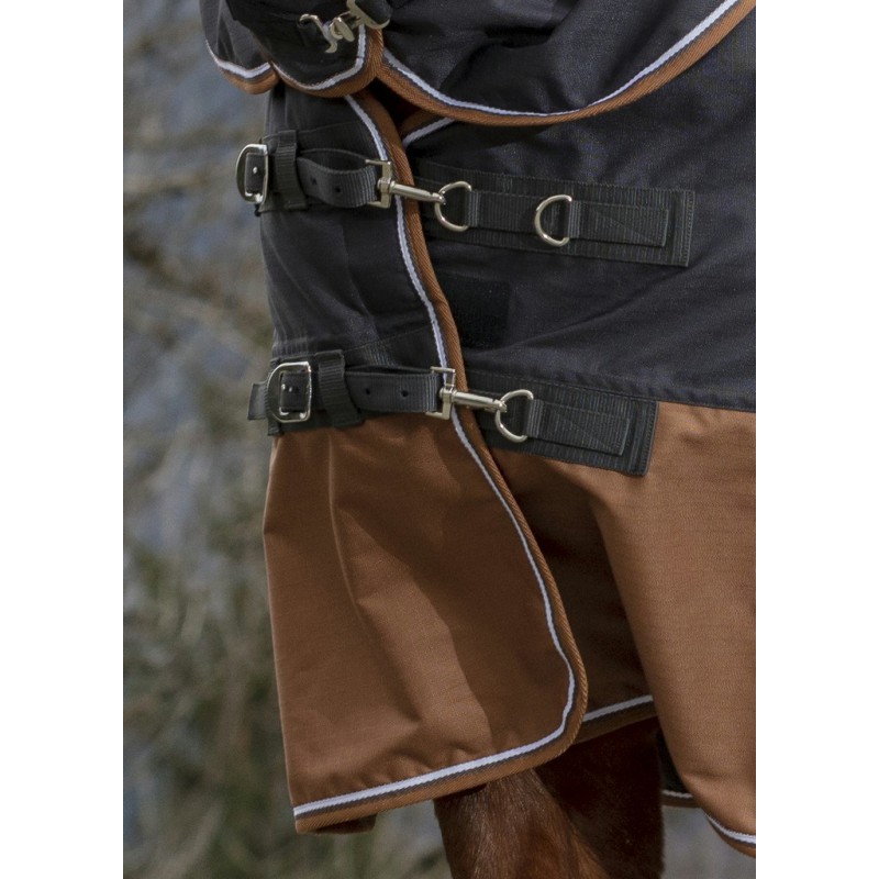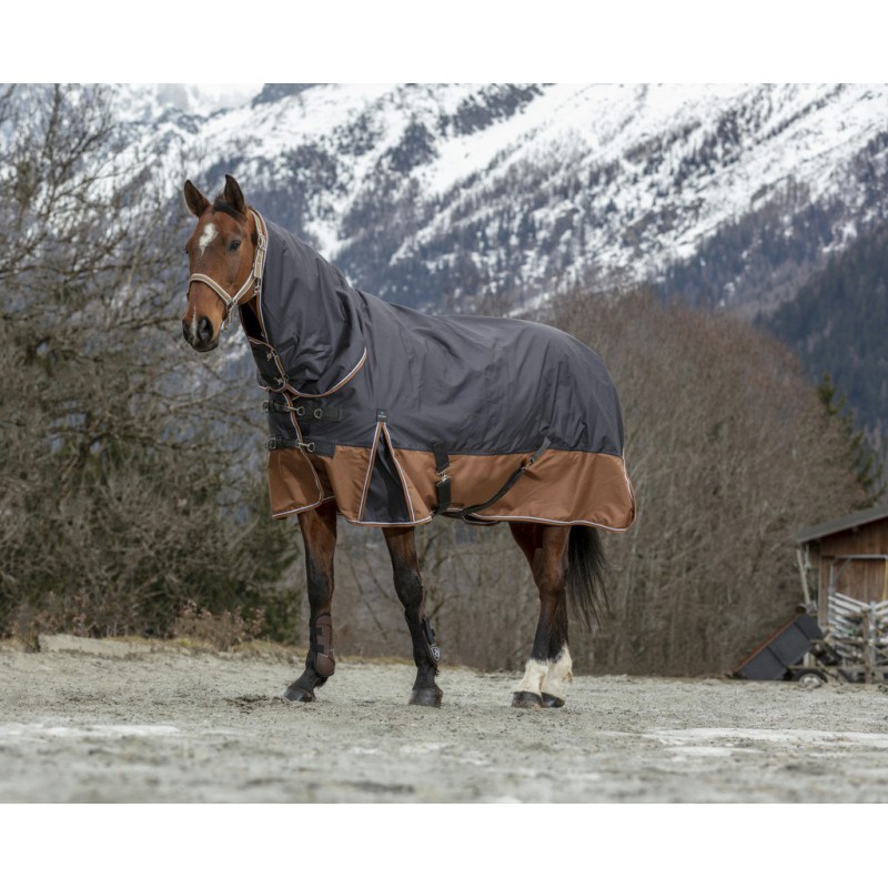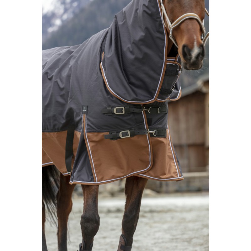 Прогулочная попона с капором из дыщащего непромокаемого полиэстера Ripstop, прочностью 600 Ден с высоким коэффициентом воздухопроницаемости - 3000 mvp и непромакаемости - 3000 wr/wp. Эта прекрасная цельнокройная попона (нет шва на спине) с проклеиными швами прослужит вам долгую службу Оснащена клиновидными вставками на плечах, удобными попонодержателями под животом, застежками на карабинах на груди, защитным клапаном для хвоста и мягкой меховой опушкой на холке. Наполнение - полифил 300 гр/кв.м Материал верх: 100% полиэстер Rip Stop. Подкладка: нейлон. Машинная стирка при 30 градусах.