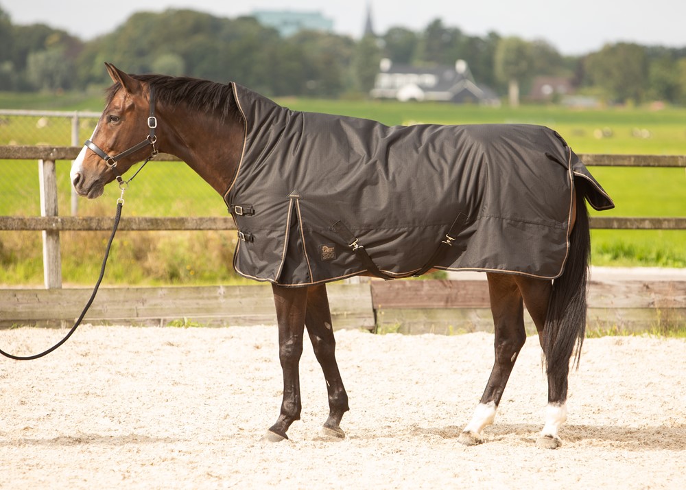 Прочная зимняя попона с полукапором, плотностью 600 Ден с высоким коэффициентом воздухопроницаемости - 2000 mvp и непромакаемости - 2000 wr/wp. Оснащена клиновидными вставками на плечах, удобными попонодержателями под животом, застежками на груди, защитным клапаном для хвоста и мягкой меховой опушкой на холке. Наполнение - полифил 200 гр/кв.м. Машинная стирка при 30 градусах.