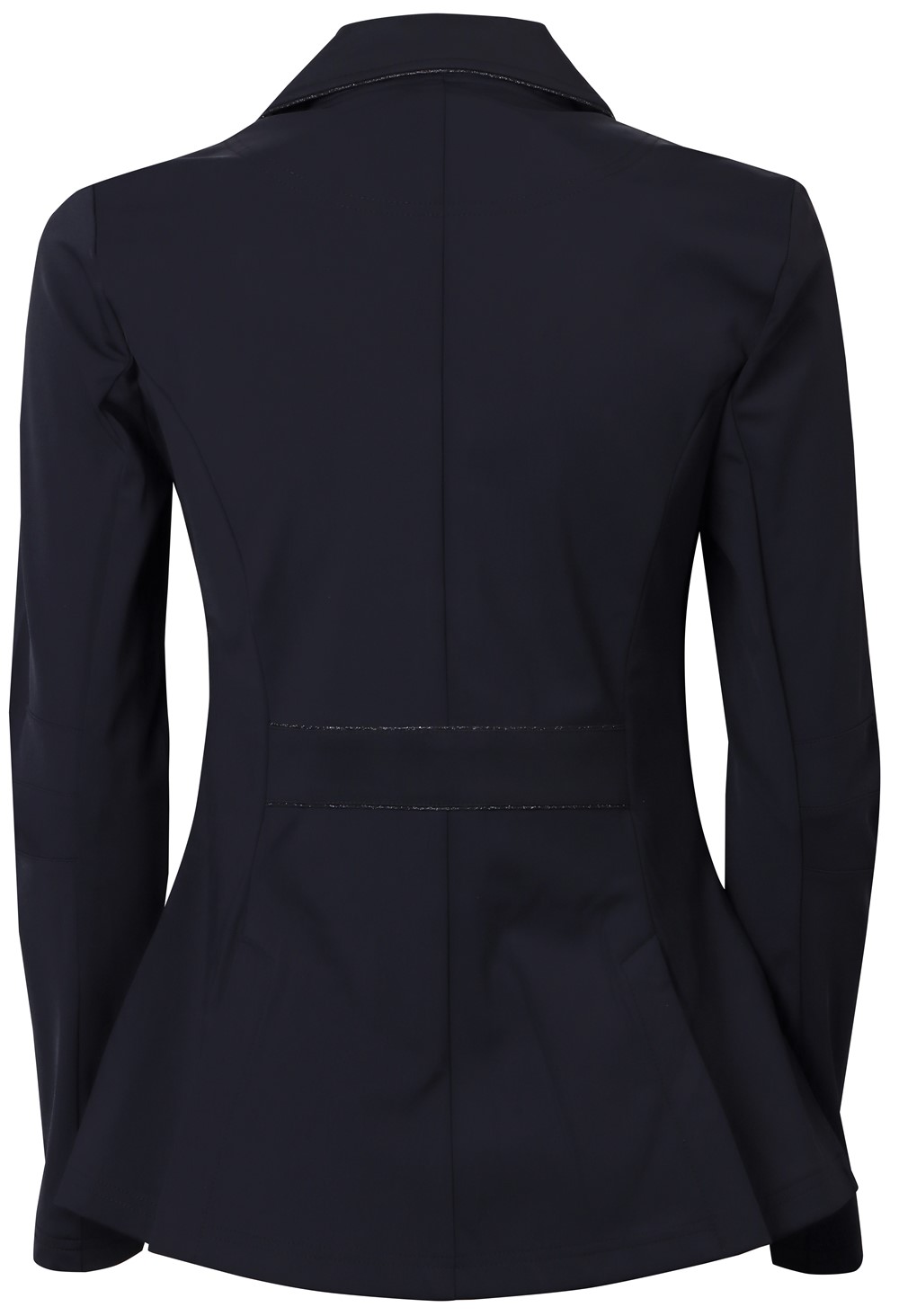 Женский редингот для выступлений из высококачественного эластичного материала. Отлично сидит по фигуре и не стесняет движения. Ткань обеспечивает максимальный комфорт при движении, не мнется и легко чистится. Редингот имеет красивую блестящую окантовку вдоль воротника, на карманаx и на панели сзади. Застежка на пуговицы и скрытая застежка-молния. Материал: 100 % полиэстер. Европейские размеры Машинная стирка при 30 ° C