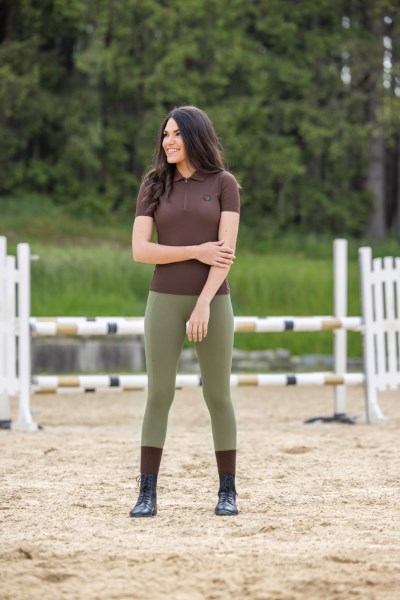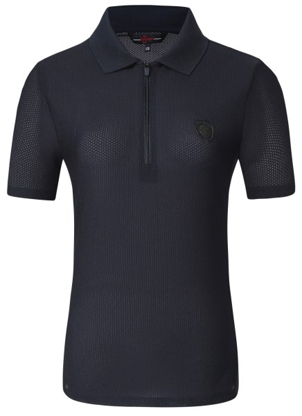 Легкая спортивная рубашка-поло Mesh из новой коллекции Covalliero весна-лето 2024 снанет незаменимым атрибутом для тренировок в жаркое время года! Рубашка-поло с короткими рукавами, классическим воротником и застежкой на молнию. Женственный приталенный крой. Дышащий сетчатый материал с эластичными вставками по бокам легко отводит влагу, не мнется и не сковывает движений. Состав: перфорированный материал - 80% полиэстер, 20% спандек; эластичные вставки - 88% полиэстер, 12% спандекс. Легко моется и стирается в стиральной машине при 30 градусах.