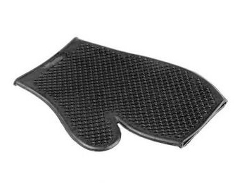 Резиновая перчатка с покрытой пупырышками поверхностью. Предназначена для мытья лошади или втирания различных средств. Открыта на кончиках пальцев.