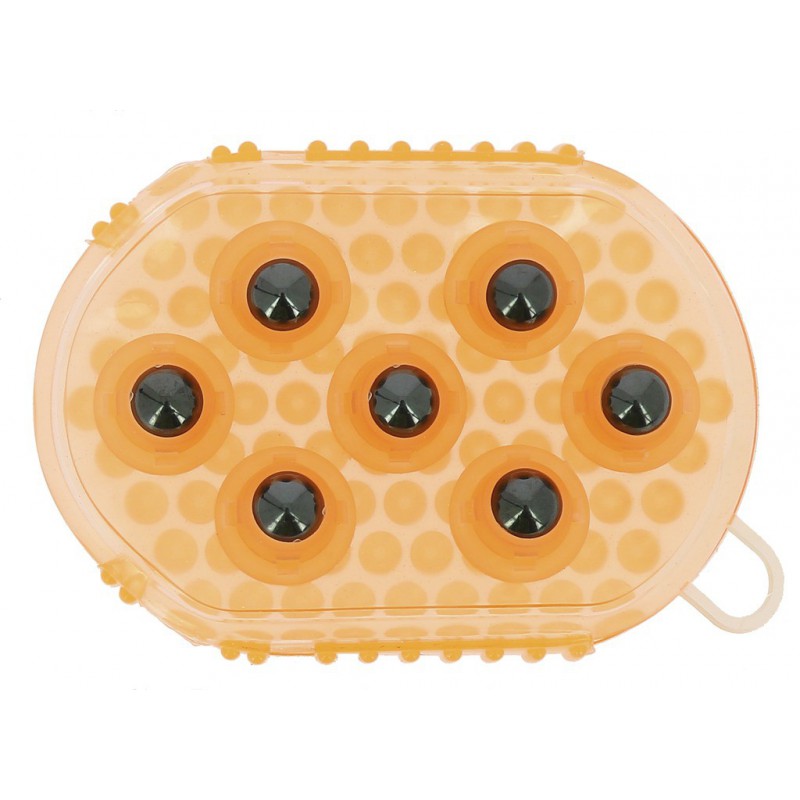 Пластиковая двусторонняя массажная перчатка, имеющая с одной стороны множество мелких резиновых зубчиков, с другой - семь крупных металлических шариков. С помощью такой перчатки можно эффективно разогреть мышцы перед тренировкой, или массажировать напряженные мышцы после нагрузок.