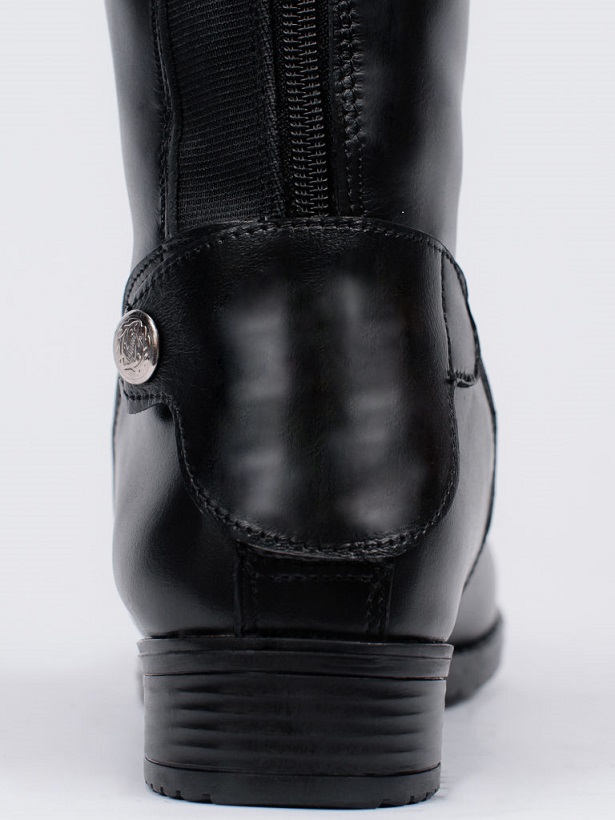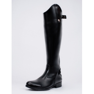 Прекрасный недорогой вариант сапог для занятий верховой ездой из натуральной кожи. Длинная молния находится сзади, что позволяет значительно легче их надевать. Благодаря специальной застёжке на пятке, шпора не цепляет замок. Эластичная резиновая вставка по бокам задней молнии позволяет увеличить объем голенища на несколько сантиметров. Размер обуви: 24 см — 36 RU, 24.5 см — 37 RU, 25.5 см — 38 RU, 26 см — 39 RU, 26,5 см — 40 RU, 27 см — 41 RU