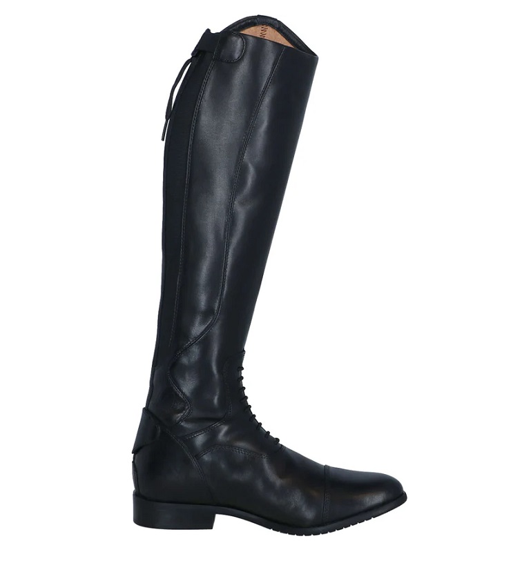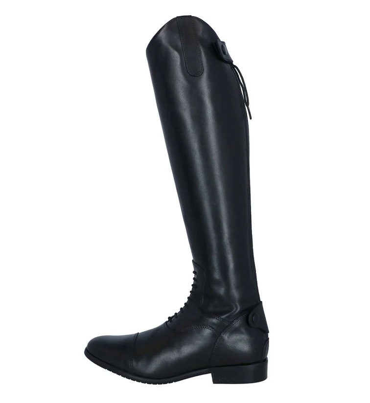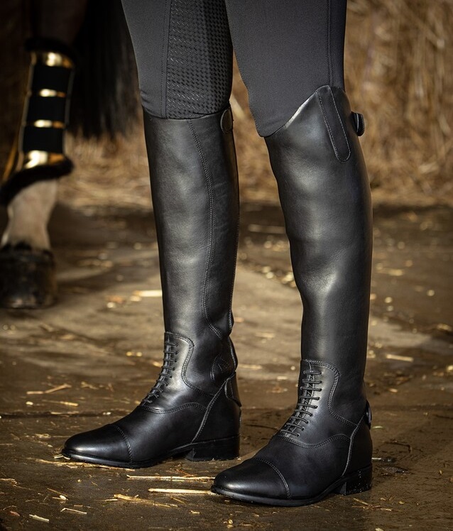 Сапоги для верховой езды из высококачественной гладкой кожи. Сапоги имеют эластичные шнурки и длинную молнию сзади. Кожаная внутреняя подкладка подкладку для оптимальной воздухопроницаемости. Сапоги с мягким усилением на лодыжке, чтобы обеспечить оптимальный комфорт. Эластичная резиновая вставка по бокам задней молнии позволяет увеличить объем голенища до 3 см. Комфортная и недорогая модель для ежедневных тренировок и турниров.