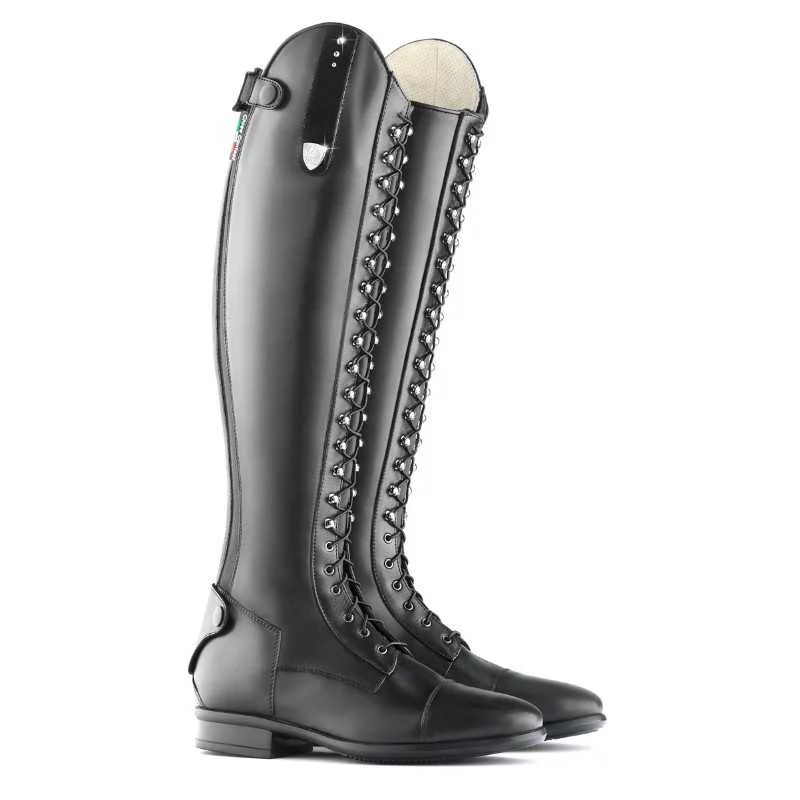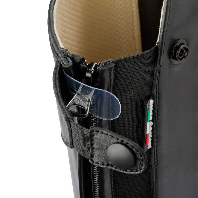 Сапоги Tattini Akita Close Contact — это идеальный баланс между стилем, комфортом и функциональностью. Сапоги изготовлены из высококачественной натуральной телячьей кожи, обеспечивающей долговечность и прочность. Передняя застежка с эластичными шнурками обеспечивает надежную посадку, гарантируя, что сапоги идеально облегают вашу ногу. Сапоги имеют внутренний клапан из эластичной лайкры, который прилегает к голени и закрывается с обеих сторон, защищая ноги от пыли, грязи и воды. Подкладка с микроперфорацией и эксклюзивная система вентиляции Air Boost обеспечивают прохладу и комфорт в течение дня, предотвращая скопление влаги и обеспечивая превосходную воздухопроницаемость. Эластичная резиновая вставка вдоль задней молнии позволяет дополнительно регулировать объем голенища по ноге всадника.