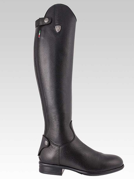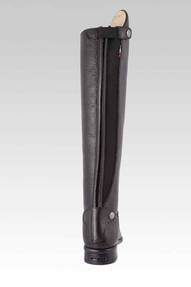 Сапоги выполнены из высококачественной мягкой зерненной телячей кожи. Амортизирующая резиновая подошва с системой анти-шок, которая снижает воздействие на пятку и перенапряжение стопы. Это первые на рынке сапоги для верховой езды с эксклюзивной системой вентиляции Air Boost. Эластичная резиновая вставка по бокам задней молнии позволяет увеличить объем голенища до 3 см. Комфортная и недорогая модель для ежедневных тренировок и турниров. Цвет: черный
